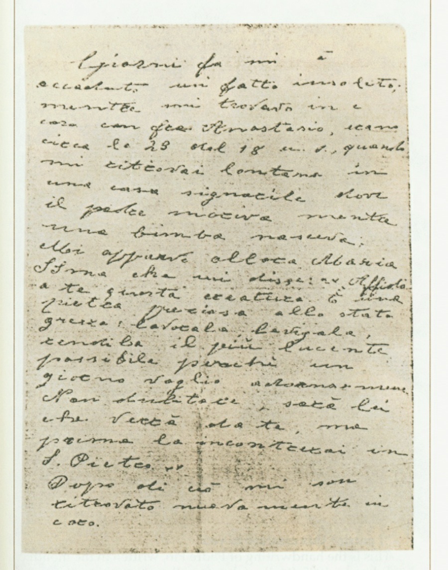 Padre Pio handwritten note was kept for years by Padre Agostino. Later