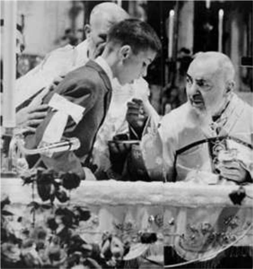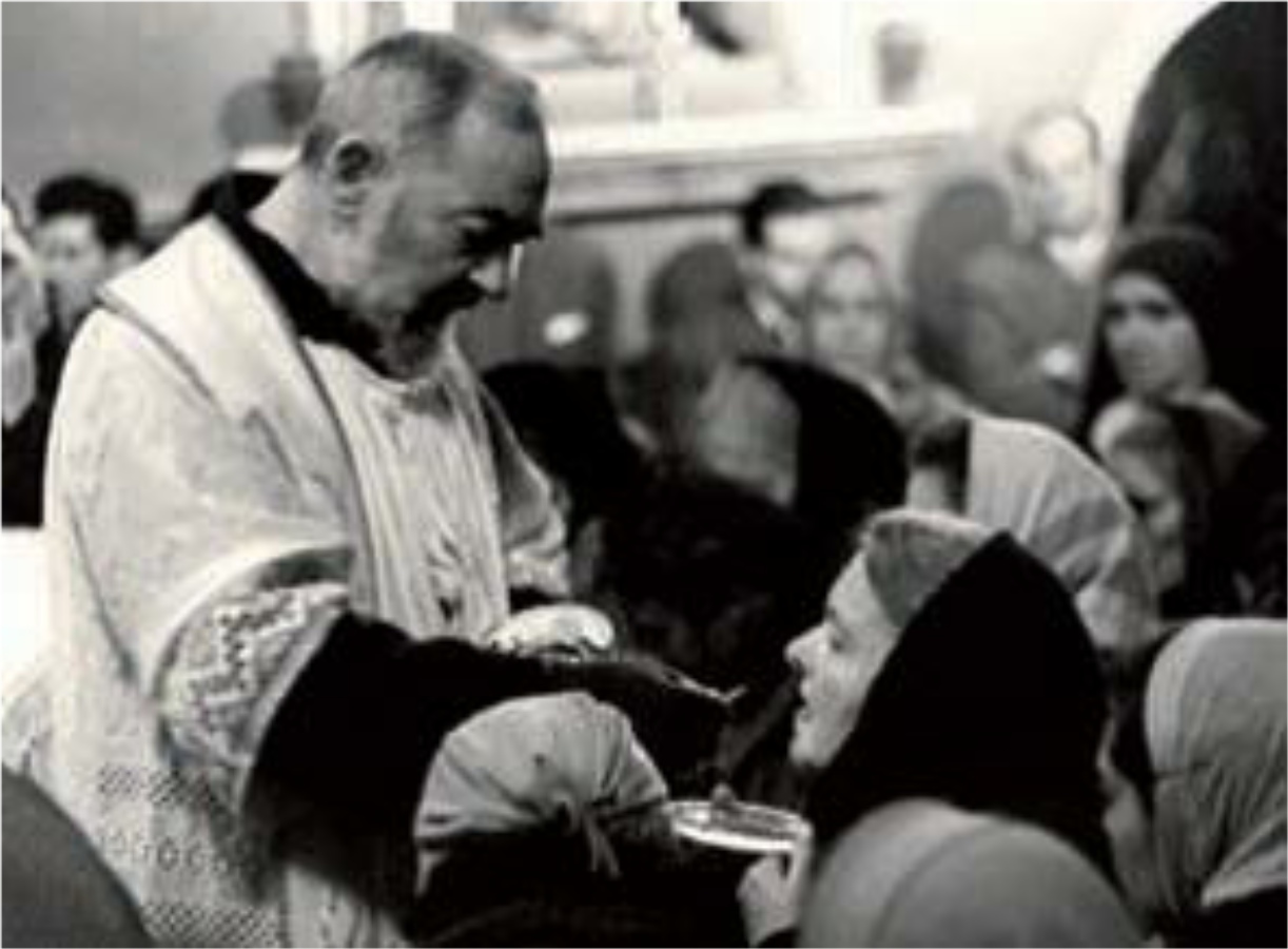 Padre Pio gave First Communion to children. The child received a