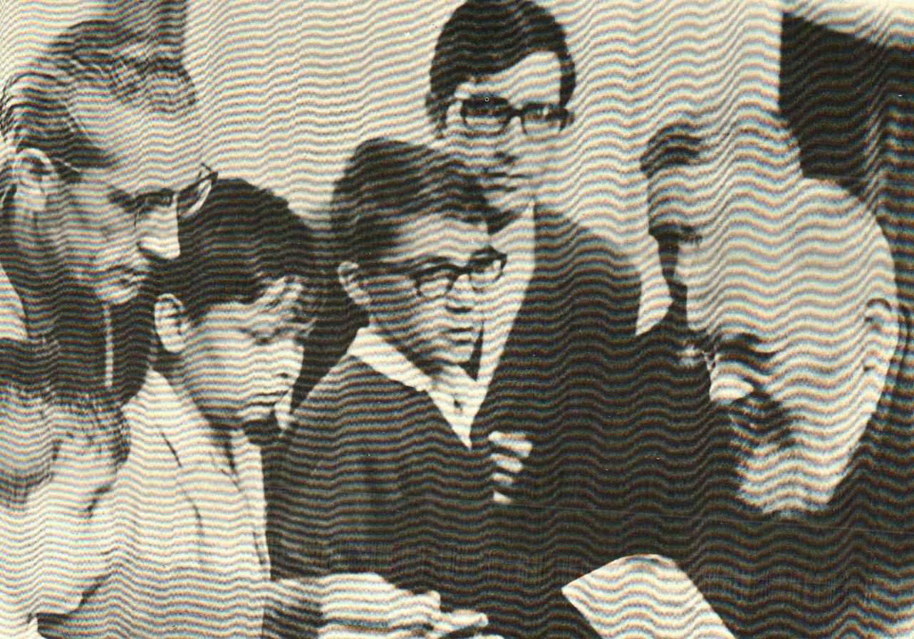 Giovanni Celotto and Raffaele Esposito standing at the center of the picture, behind Padre Alessio.