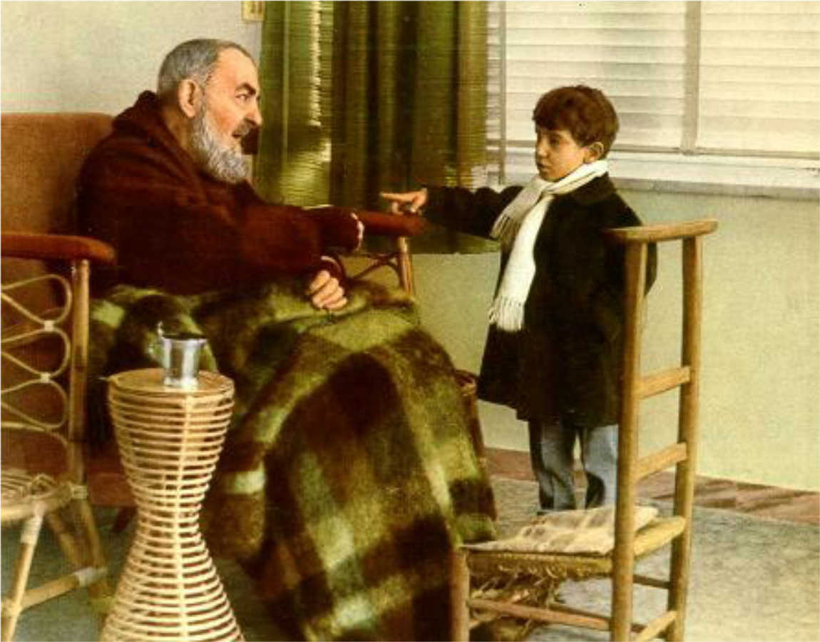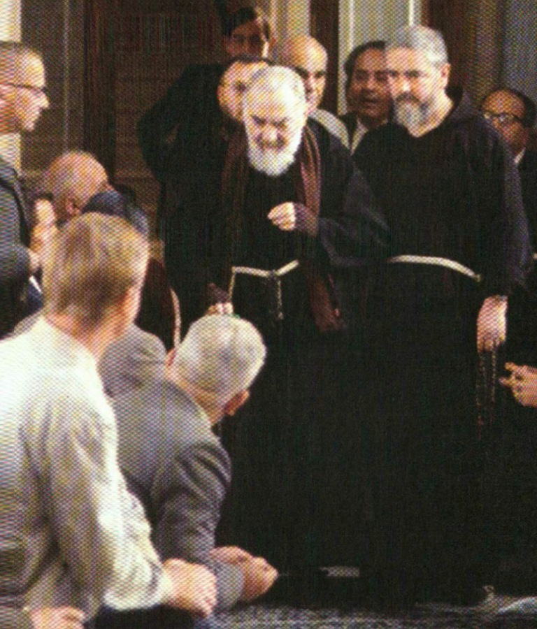 1 Franco Parmentola (talking to Padre Pio) and 2 Giovanni Parmentola (kneeling far right)