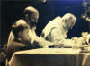 In the detail, Padre Pio seems to be looking at none of the presents, but at something else.
