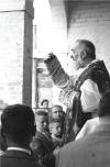 Padre Pio celebrates mass at the altar set up at the entrance of "Casa Sollievo della Sofferenza" the day of the grand opening and in other anniversaries.