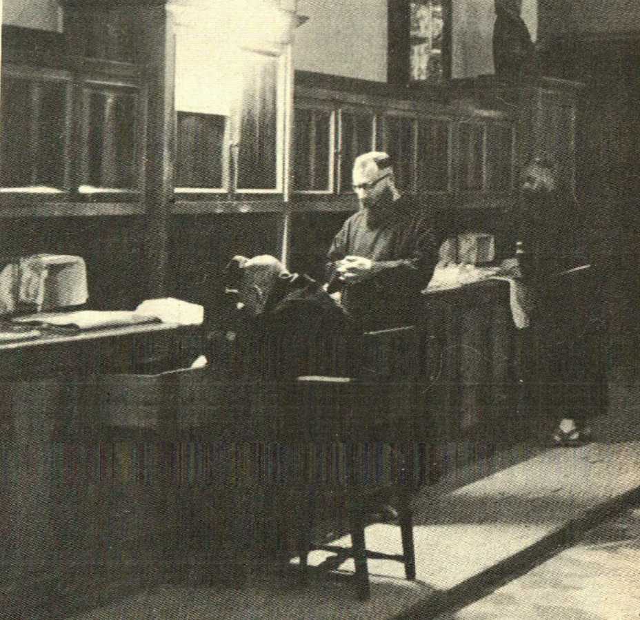 In the sacristy of the old church Padre Pio got dressed for Mass at the counter. He also passed by the sacristy after confessing the women, and greeted the ones that were waiting.