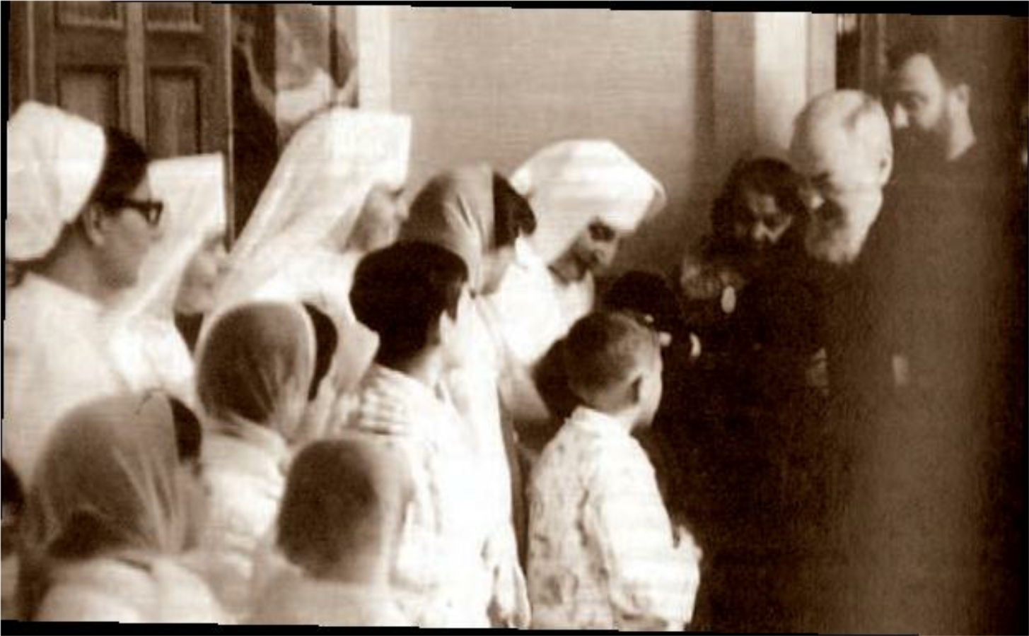 Outpatient Clinic On July 26, 1954 Padre Pio blessed the Outpatient Clinic. Padre Pio blessing the analysis lab. On his left Dr. Sanguinetti and Dr. Pancaro. On his right are Ernesto Lupi, son of the builder, and Dr. Francesco Lotti.
